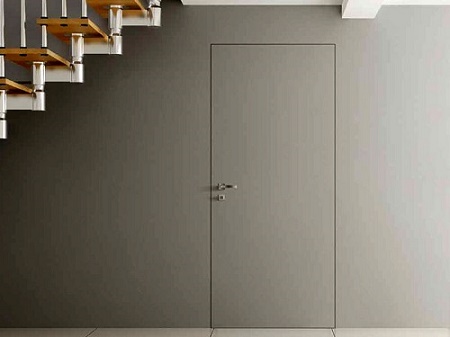 На дверь крепят листы гипсокартона, грунтуют, шпаклюют и наносят финишное покрытие также как на стены. Эффектно выглядят скрытые двери с зеркальными накладками или задекорированные картиной.