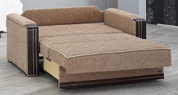 - Двуспальный выкатной диван. При его раскладывании напоминает просторную кровать. Хорошо впишутся в интерьер гостиной, в которой много места.