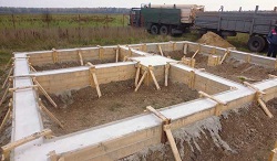 - Сборка опалубки. В качестве щитов для опалубки лучше использовать листы фанеры покрытой лаком или отшлифованные доски закрытые полиэтиленом. Главное чтобы листы выдерживали давление от бетонного раствора и легко отошли от застывшей и окрепшей конструкции при демонтаже опалубки.