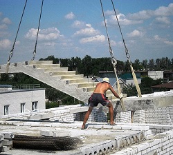 Изготавливаются современные версии из различных стройматериалов. Нынче заказать лестничные марши можно металлические, стеклянные, деревянные, а также бетонные с арматурой внутри. Последняя разновидность отличается наибольшей массивностью, поэтому нуждается в строгом соблюдении строительных норм, среди которых выделяются следующие моменты. Общие правилаРазрешено начинать монтажные мероприятия исключительно после завершения принятия опорных конструкций. При этом должна быть проведена и геодезическая проверка каждой опоры на соответствие плановому положению и высотному, составлена одноименная схема. Нельзя монтировать марш, если полностью не заполнены плитами перекрытий смежные пролеты. Игнорирование данного требования приведет к неустойчивости клетки лестничной. В этом случае не удастся ее связать и с диском перекрытия. До поднимания совершенного чистого элемента его нужно проинспектировать на марку, которая должна совпадать с проектной документацией. Важно также заблаговременно расчистить опорные участки ригелей с диафрагмами жесткости от любых загрязнений, включая снежный покров с наледью, разнообразный мусор. Специализированные изделия из железобетона надо подавать к месту монтажа в положении, которое задано проектом. Укладывать их необходимо на цементный состав с толщиной до 3 см, подвижностью менее 7 мм. Марка смеси тоже выбирается согласно требованиям проектировщиков строящегося сооружения. Любые изменения должны заранее согласовываться с ними. Особые правилаПри установке требуется контролировать площади площадок, на которые опирается марш, горизонтальность размещения, отклонения от разметок, качество сварных швов, антикоррозийных покрытий. Ступени по горизонтали могут отклоняться на величину, меньшую 2 мм. На аналогичное значение допустимо отклонение от вертикали защитных решеток. Вдвое дальше разрешается отдаляться от отметок верхних, симметричности в направлении закрываемого пространства. Недопустимо пользоваться водным раствором цемента с песком, если он начал схватываться. В этот момент уже нельзя разбавлять его и водой, потому что прочностные показатели сильно пострадают. |